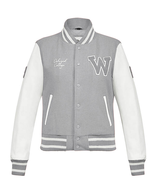 Giacca corta per donne in vera pelle di Mouton del marchio Oakwood. È realizzato in tessuto a livello del corpo e della pelle con maniche. La giacca ha costole grigie e bianche al collare, alla vita e al fondo. La giacca ha un colletto di piccoli ufficiali, si chiude con la pressione sul davanti. Hai due tasche di pregiudizio, ricami sul petto e la parte superiore delle maniche. In termini di rivestimento per il corpo, è composto da 70% di lana e acrilico al 30%'