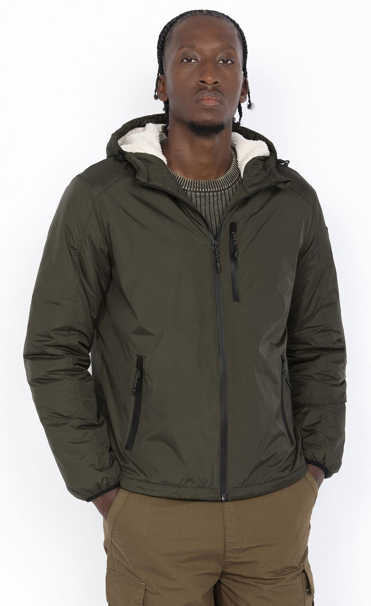 Giacca con cappuccio foderata in sherpa color kaki Schott