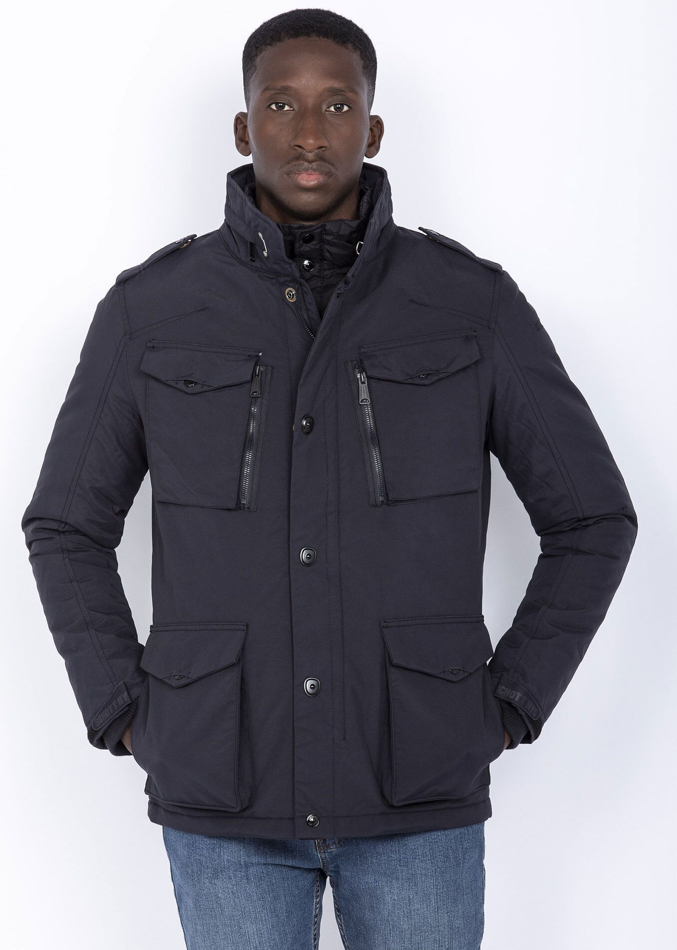 Realizzata in 100% nylon, la giacca Field si distingue per la sua robustezza e leggerezza, offrendo un comfort ottimale proteggendo efficacemente dal vento e dalle intemperie. Il cappuccio sotto il colletto fornisce una protezione aggiuntiva, mentre la chiusura con zip dritta è nascosta sotto una patta con bottone automatico, combinando sicurezza, isolamento e design elegante.