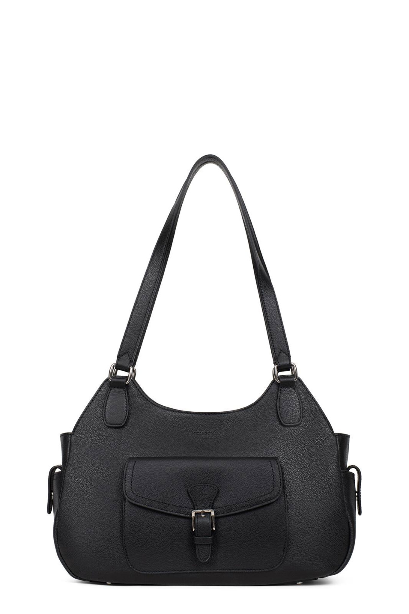 Borsa da donna in pelle di vacchetta granulata del marchio Hexagona. Troviamo una borsa di medie dimensioni dal look piuttosto chic e trendy allo stesso tempo. All'esterno sono presenti 4 tasche (2 laterali con automatici, 1 frontale con patta + calamita e 1 posteriore con cerniera). La borsa può essere portata a spalla o a mano grazie ai suoi 2 manici. Gli accessori come i bottoni automatici, le fibbie e le cupole sotto la borsa hanno una finitura metallica che funge da rinforzo protettivo per posizionare la borsa a terra. La borsa in pelle Hexagona si chiude con una cerniera e si apre su un unico scomparto separato da una tasca con cerniera, sono presenti anche diverse aree portaoggetti sotto forma di tasche. La fodera è sintetica e le dimensioni della borsa sono: