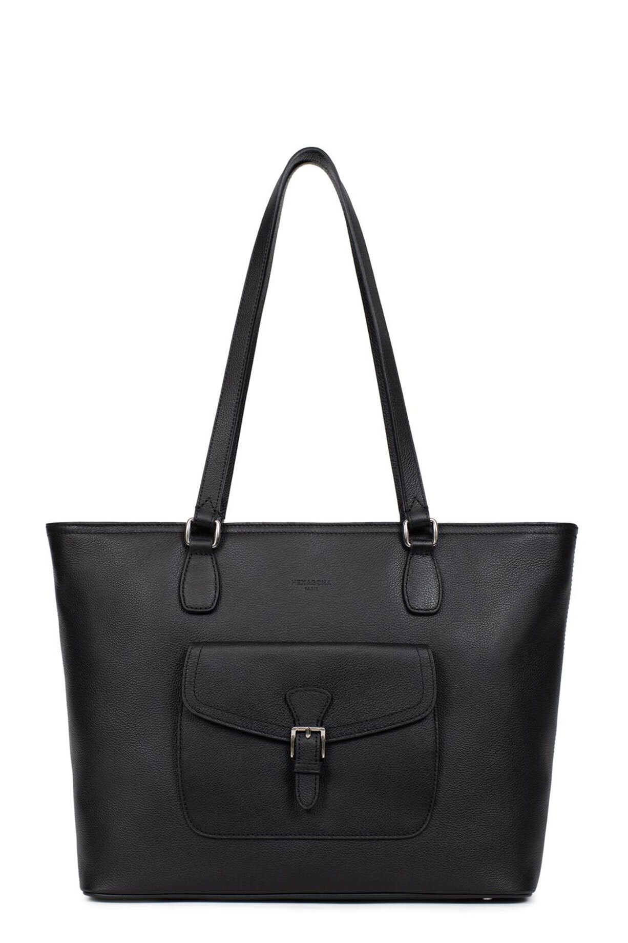 Borsa da donna in pelle di vacchetta granulata del marchio Hexagona. Troviamo una forma classica con 2 tasche esterne (sul davanti con 1 patta e sul retro con 1 cerniera) e uno stile trendy. La borsa si chiude con cerniera e si apre su 1 unico scomparto separato da 1 tasca con chiusura e dispone di diversi spazi portaoggetti, la fodera è sintetica e le misure della borsa sono le seguenti: