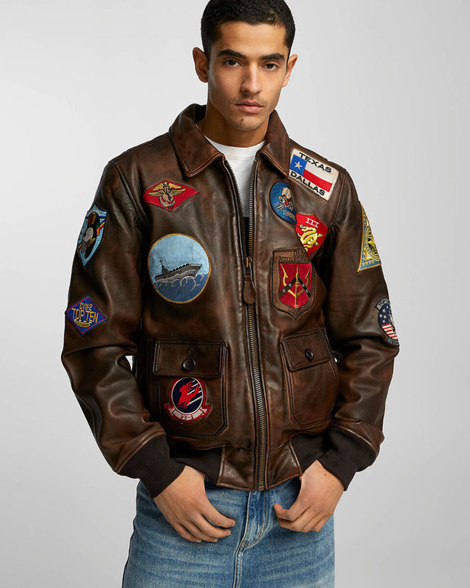 Bomber da uomo top gun marrone scuro effetto invecchiato