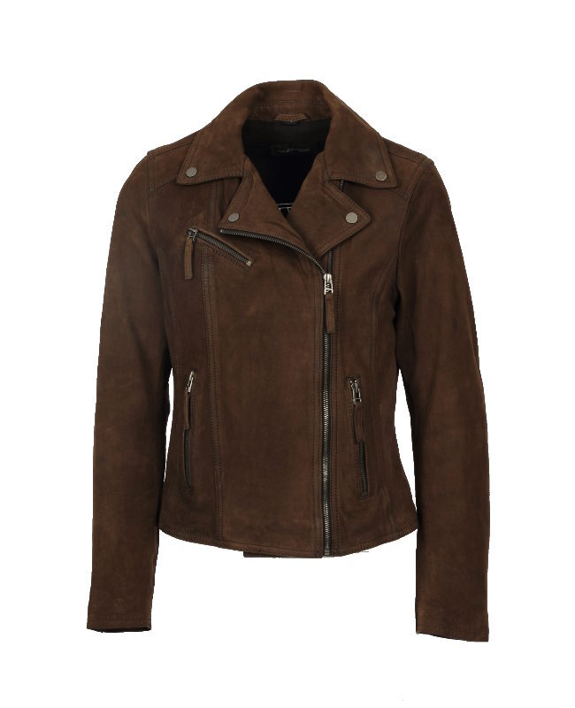 Giacca di pelle da donna marrone scuro Stile per biciclette