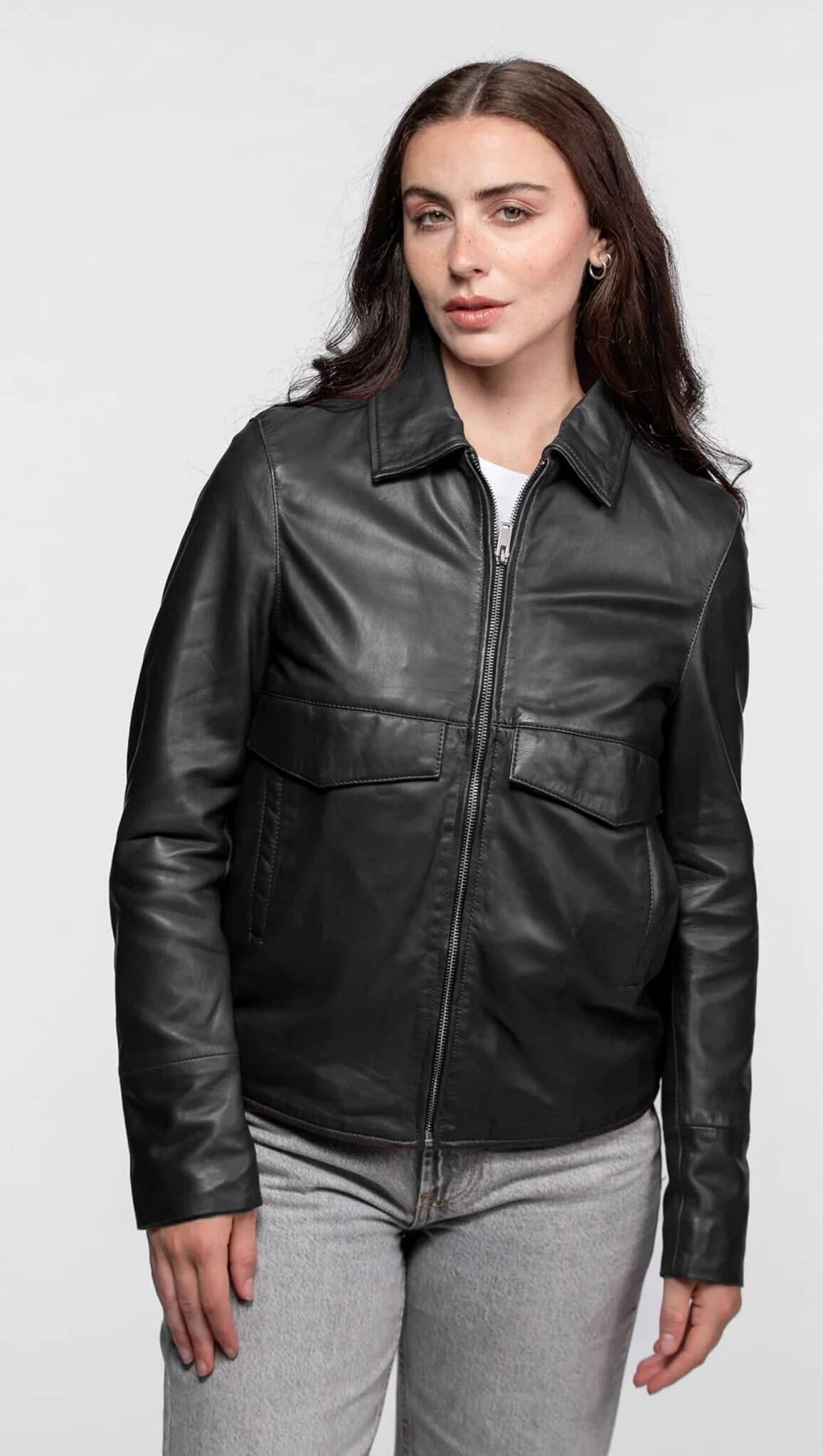 Giacca in pelle di montone nera – Eleganza urbana e comfort premium
