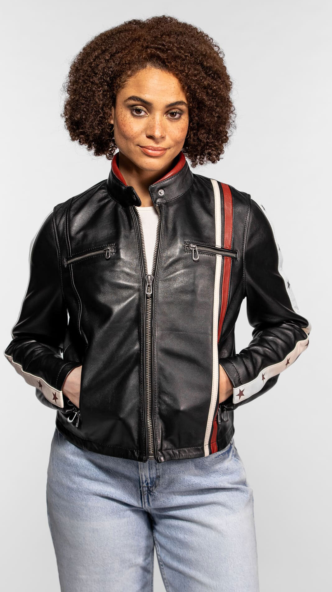 Indossare questo modello significa scegliere un pezzo di carattere che si libera dalle mode effimere. Il taglio dritto e l'iconico colletto alla coreana ricordano le giacche da pilota, qui reinterpretate con assoluta finezza. Il nostro ruolo di curatori ci ha portato a questo modello per l'eccezionale qualità della sua pelle di agnello, scelta per la sua flessibilità e la sua capacità di patinare nobilmente. Questa giacca da moto in pelle da donna Rose Garden "PEONY" non è solo un capo di abbigliamento: è una firma visiva che dà immediata sicurezza a chi lo indossa.