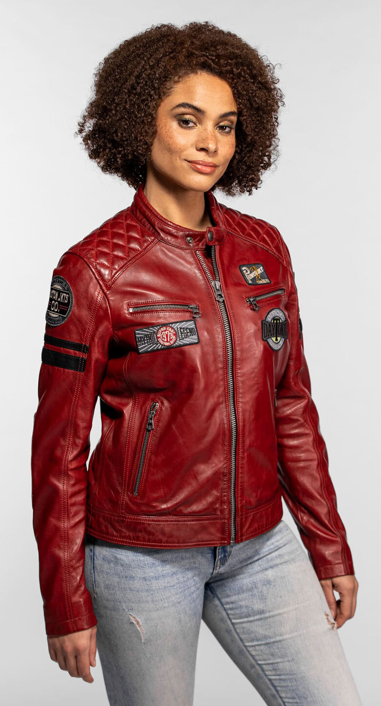 Giacca da donna in pelle rossa stile biker Daytona