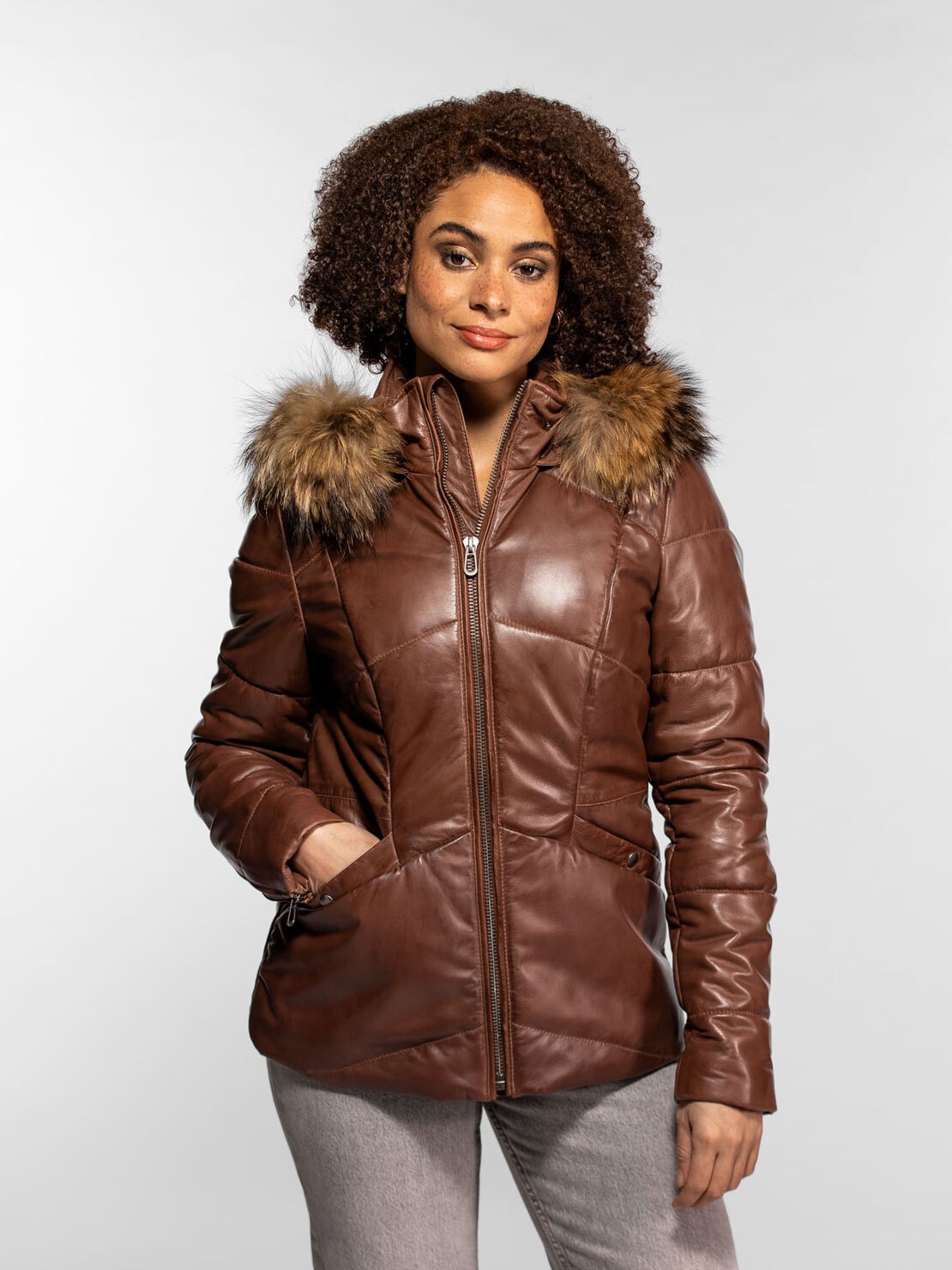 Il piumino da donna in pelle con pelliccia per eccellenza