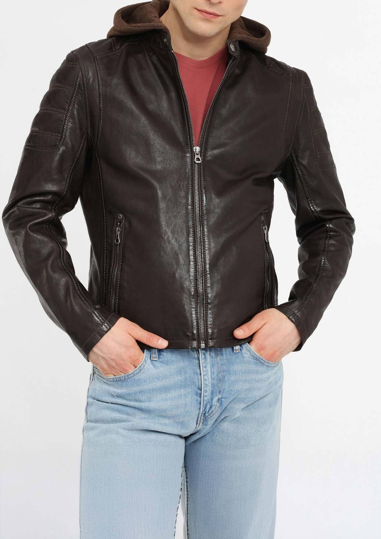 Giacca da uomo del marchio Gipsy in pelle di agnello vegetale. La pelle è elastica, leggera, molto morbida, patinata naturalmente. La fodera è in cotone e le maniche sono in poliestere. Hai due tasche interne per portare con te i tuoi effetti personali ovunque. Il suo taglio è regolare, la giacca comoda, veste molto bene, misura 64 cm di lunghezza sulla taglia M. La giacca di pelle ha un cappuccio in cotone rimovibile, che le conferisce un lato sportivo e rilassato. Una volta tolto, hai un piccolo colletto alla coreana con bottoni a pressione, per un look più biker, pur rimanendo elegante, da città. La giacca di pelle si chiude con una cerniera dritta, ci sono due tasche oblique con cerniera. Hai inserti fantasia con cuciture sulla parte superiore delle spalle. In vita ci sono delle linguette che stringono, nella parte bassa della schiena uno sprone arrotondato, più piacevole. Nella parte inferiore della manica ci sono comode cerniere.